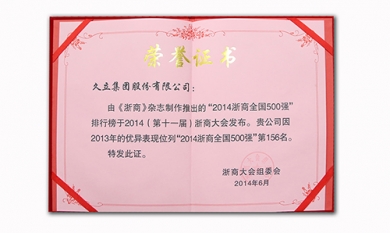 由《浙商》雜志推出的“2014浙商全國500強”排行榜于2014(第十一屆)浙商大會發(fā)布。